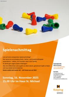 | Beschreibung | Lust auf einen entspannten Spielenachmittag? Hier kannst du verschiedene Brett-, Karten- und Gesellschaftsspiele ausprobieren - alleine, mit Freunden oder in der Familie. Du darfst gerne eigene Spiele mitbringen! Alle sind willkommen und es geht vor allem darum, gemeinsam Spaß zu haben und neue Spiele kennenzulernen. Komm vorbei und mache mit - wir freuen uns auf dich! |